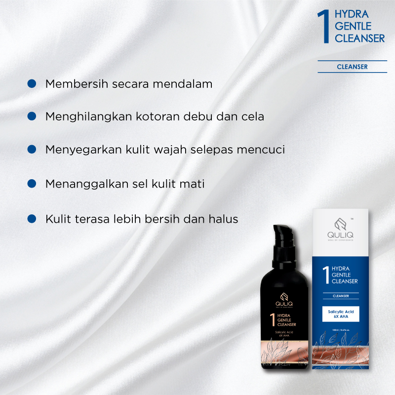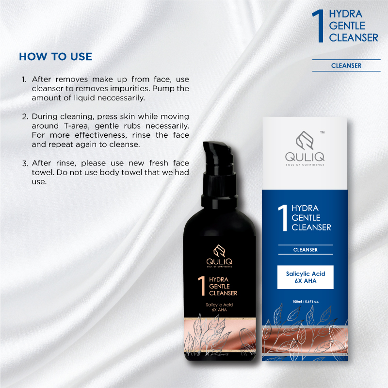 Pembersih berasaskan air yang lembut pada kulit dengan keupayaan untuk pembersihan mendalam dan penyingkiran kekotoran. Pembersih ini juga mampu menanggalkan sebum berlebihan dan dengan formulasi khas daripada formulator pakar kami, Hydra Gentle Cleanser by QuliQ akan memberikan kulit anda kelembapan lebih lama dan tidak mengeringkan. Sesuai untuk semua jenis kulit.