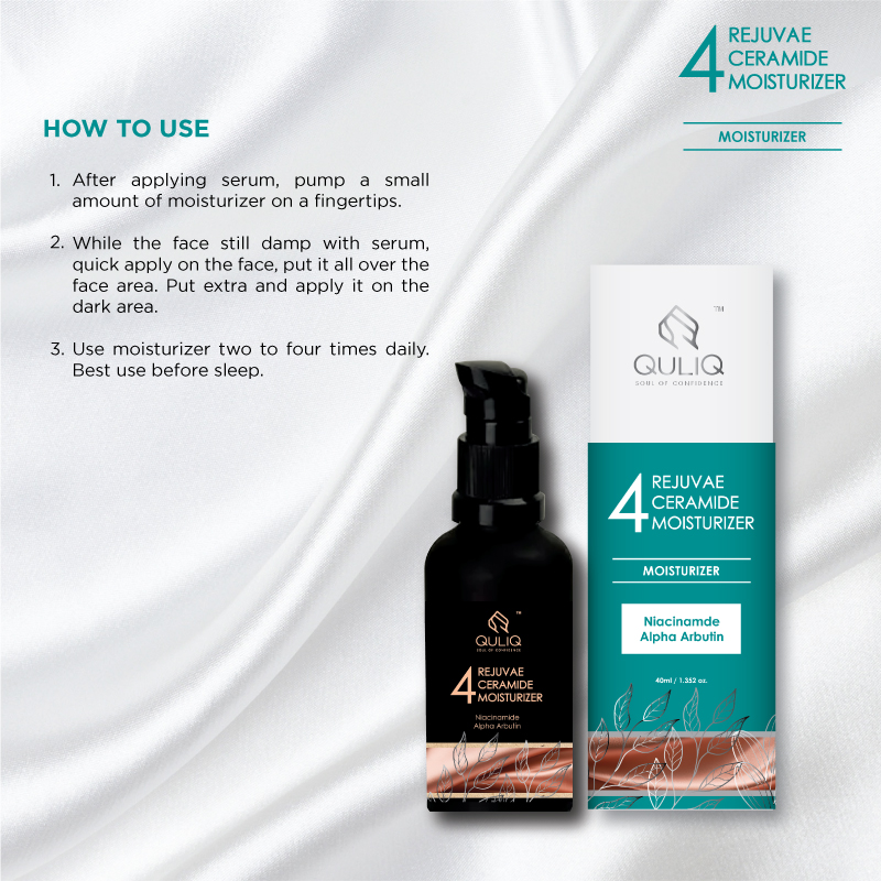 Apply Rejuvae Ceramide Moisturizer on the skin, 1-2 minutes after applying serum. Put it gently on the face and under the neck. To get a better result, pat gently to awaken the skin.